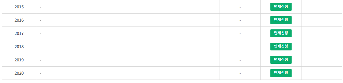 - 면제 신청을 하고자하는 년도를 클릭하여 면제신청 가능!