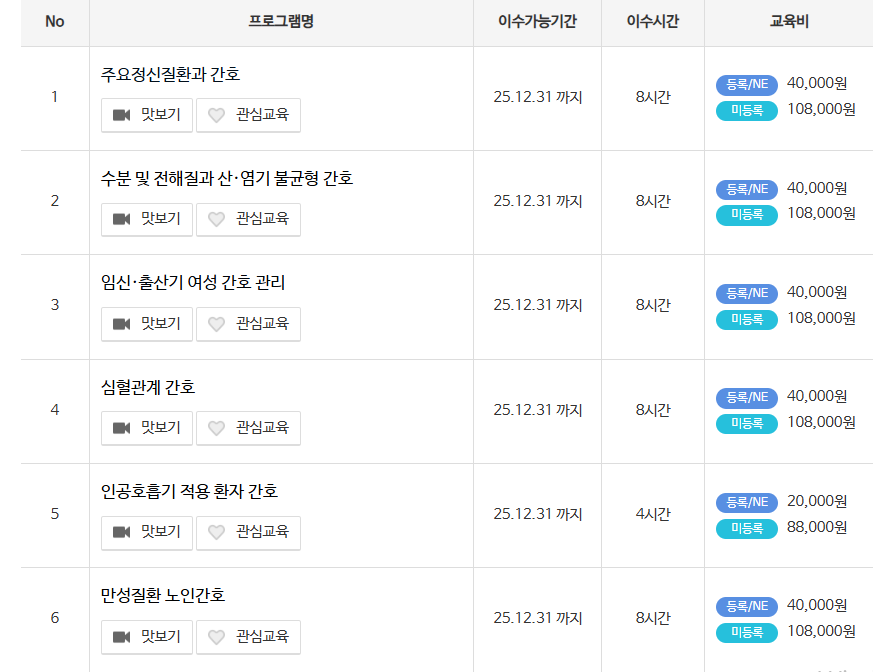 - 주의 !! 등록간호사인지 미등록인지에 따라서 교육비 차이가 있음.