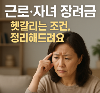 • 자녀장려금: 부양자녀가 있어야 하며, 배우자 소득도 일정 기준 이내여야 합니다.
